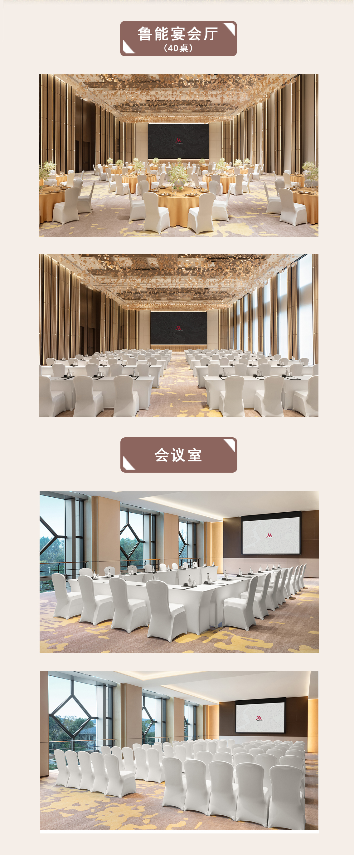 无锡鲁能万豪酒店拥有超过1400平方米的活动场地,并且配备专业先进的影音设备,是您举办会议、宴会的理想之选。欢迎大家通过婚礼季一站式备婚平台预定鲁能万豪酒店,享专属优惠!