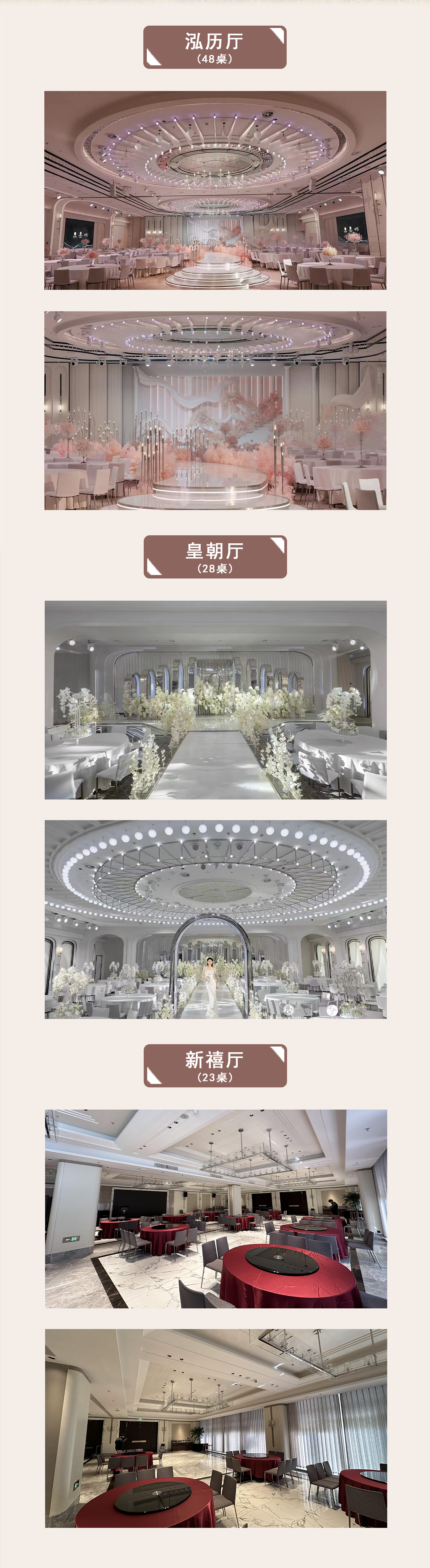 无锡泓历皇朝酒店有限公司,创建于二零零五年,是一家以经营新潮粤菜、江浙风味、川鄂农乡等各地经典名菜和地方美食的纯餐饮酒楼。 “好吃实惠,客人满意”是公司酒楼一贯坚持的经营理念。多年来,以味取胜的泓历饮食特色,深受社会各界人士的青睐。并荣获“中国餐饮名店”和“国家级绿色餐饮企业”、“江苏省餐饮名店”等殊荣。 泓历皇朝酒店目前有新体店、东亭店、鸿桥店和堰桥店,总经营面积已达二万三千多平方米,餐位5000余个。欢迎大家通过婚礼季一站式备婚平台预定泓历皇朝酒店,享专属优惠!