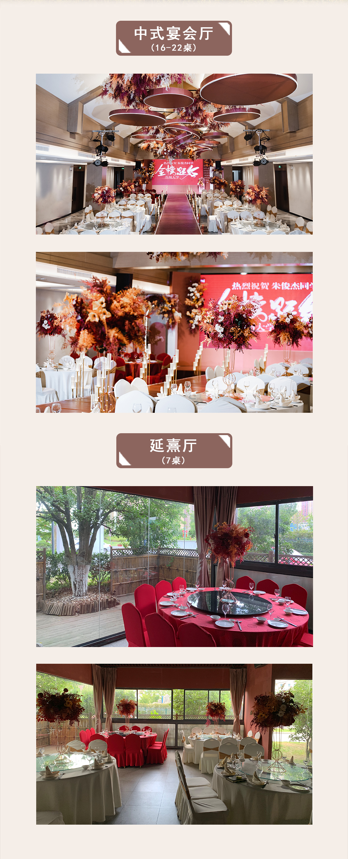 温馨提示:客户放弃的优惠和多余的赠品不得冲抵菜肴和婚庆消费,不折现,不外带。